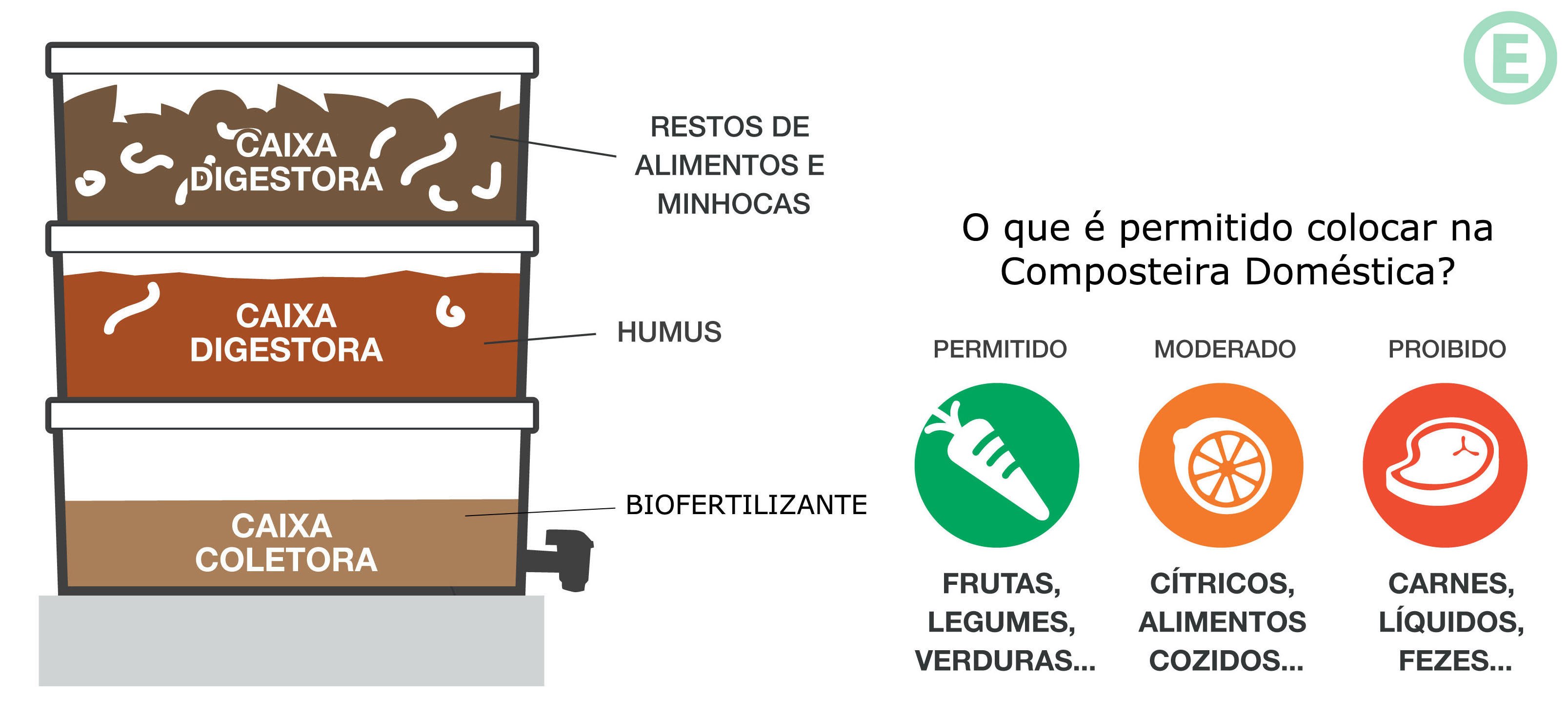 Já a Composteira Doméstica é capaz de transformar restos de alimentos e demais resíduos orgânicos em adubos com o auxílio de minhocas.